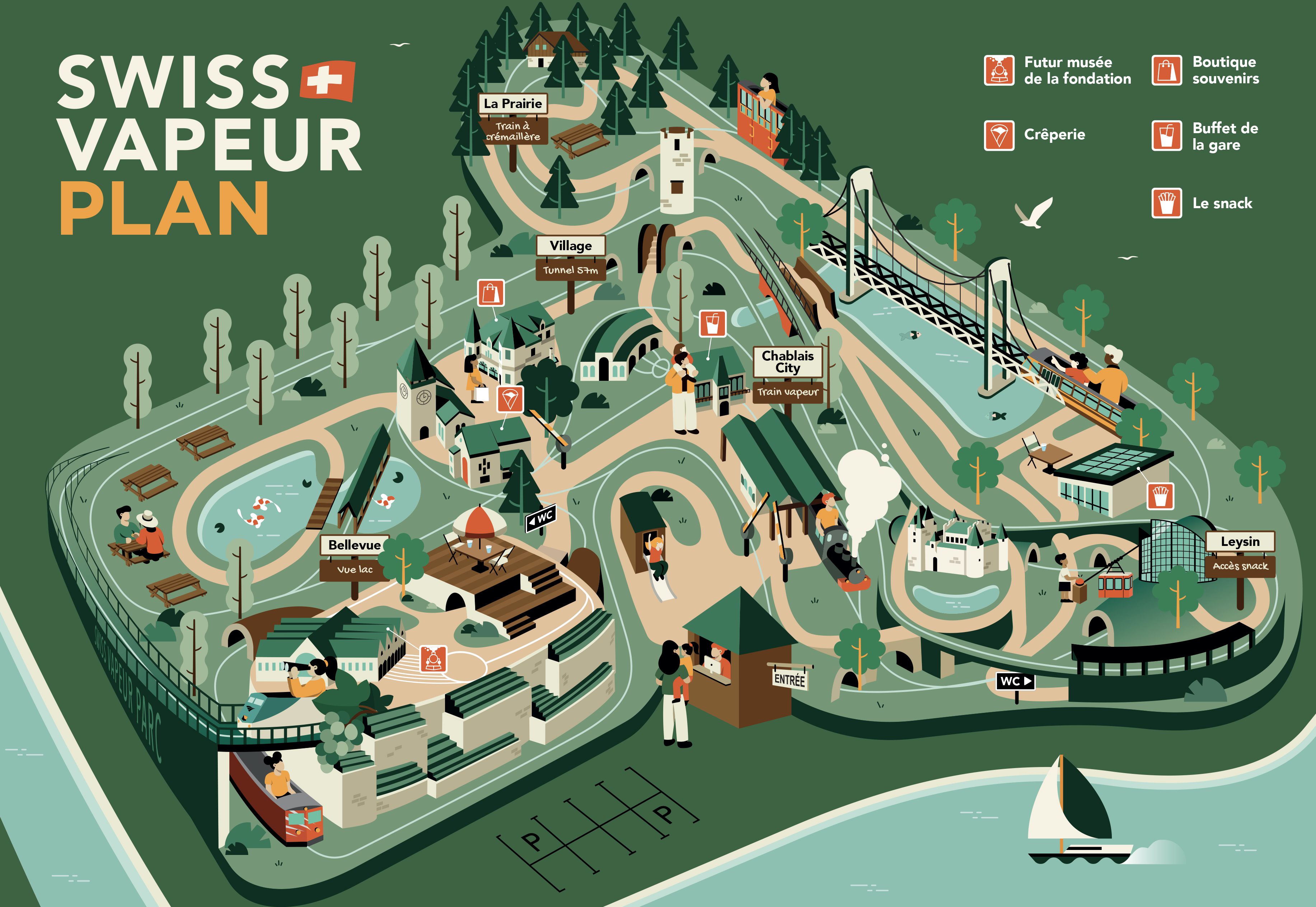 Embarquez dans l’une de nos nombreuses réplique de train à l’échelle 1/4 et laissez-vous porter au fil du paysage sur plus de 2km de circuit! Situé au bord du léman, le Swiss Vapeur Parc représente plus de 19’000m2 arborés et verdoyants, un petit bout de Suisse idéalisée. En train ou à pied, le Swiss Vapeur Parc ravira du petit au plus grand des visiteurs.